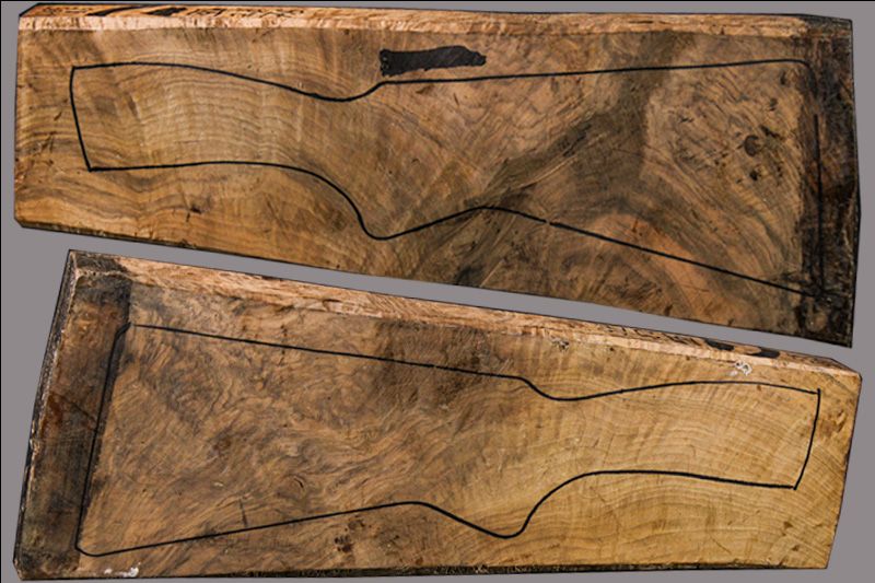 TURKISH WALNUT SHOTGUN BLANK IS READY TO BE CARVED. STRAIGHT GRAIN ON THE WRIST AREA. FORE-END INCLUDED SEPARATELY
