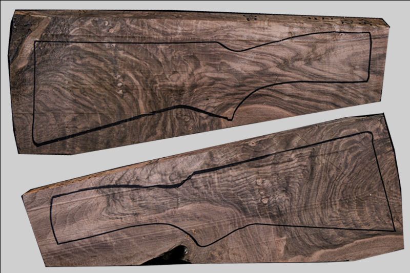 TURKISH WALNUT SHOTGUN BLANK IS READY TO BE CARVED. STRAIGHT GRAIN ON THE WRIST AREA. MATCHING FORE-END INCLUDED WITH PURCHASE