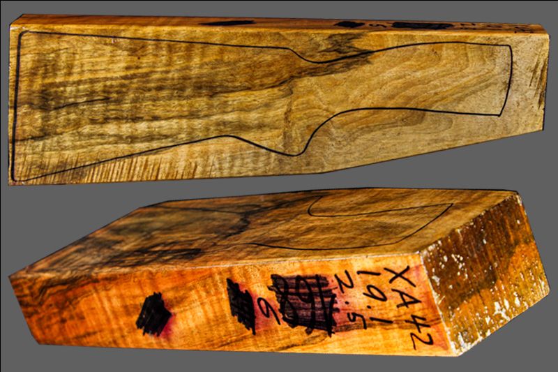 TURKISH WALNUT SHOTGUN BLANK IS READY TO BE CARVED. STRAIGHT GRAIN ON THE WRIST AREA. FORE-END INCLUDED SEPARATELY