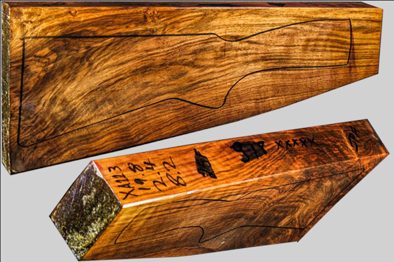 FRENCH WALNUT SHOTGUN BLANK IS READY TO BE CARVED. STRAIGHT GRAIN ON THE WRIST AREA. MATCHING FORE-END INCLUDED WITH PURCHASE