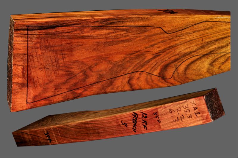 THIS FRENCH WALNUT RIFLE BLANK IS READY TO BE CARVED. STRAIGHT GRAIN ON THE WRIST AREA. IT IS FROM A VERY OLD COLLECTION AND HAS A FRENCH PRODUCER'S STAMP ON IT.