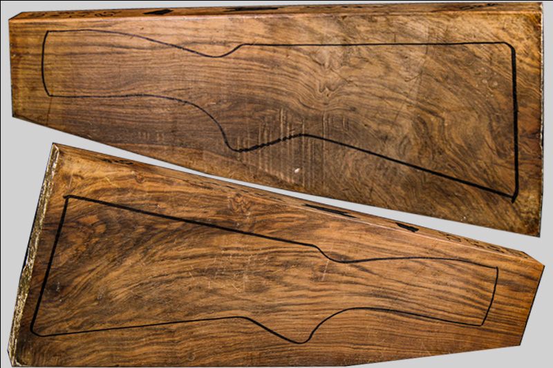 FRENCH WALNUT SHOTGUN BLANK IS READY TO BE CARVED. STRAIGHT GRAIN ON THE WRIST AREA. MATCHING FORE-END INCLUDED WITH PURCHASE